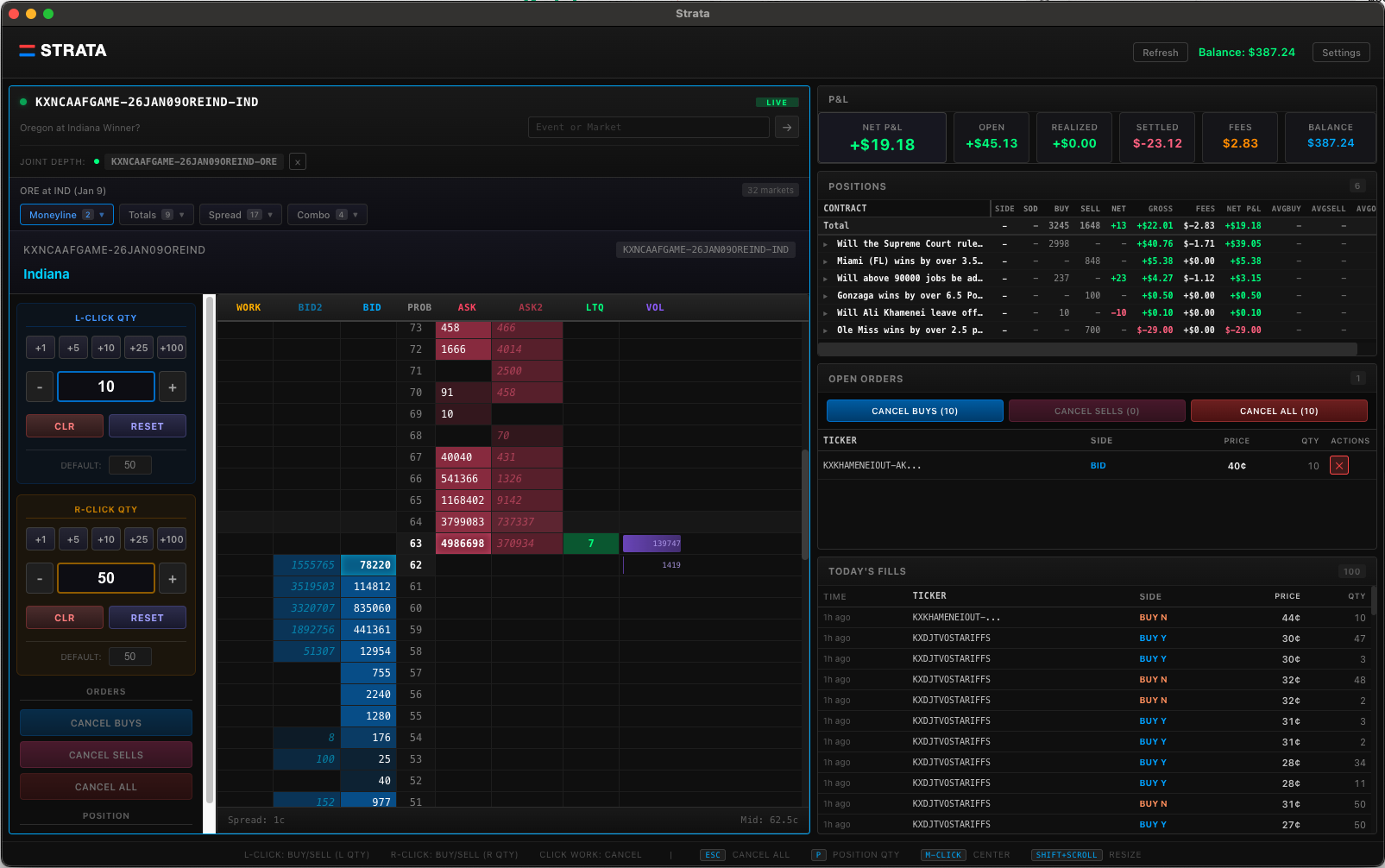 Kalshi's interface pushes you toward market orders. In illiquid markets, that means real money lost to slippage. Strata makes limit orders effortless—see the full order book, click your price, and keep more of your edge.